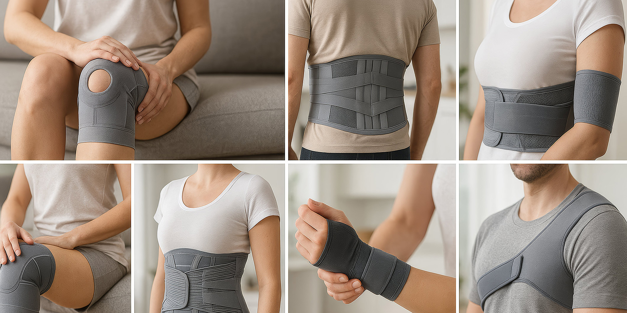 Unsere Bandagen für Fuß, Knie, Hüfte, Wirbelsäule, Hand, Ellenbogen und Schulter stabilisieren Gelenke durch sanfte Kompression und integrierte Massagezonen. Das atmungsaktive,
